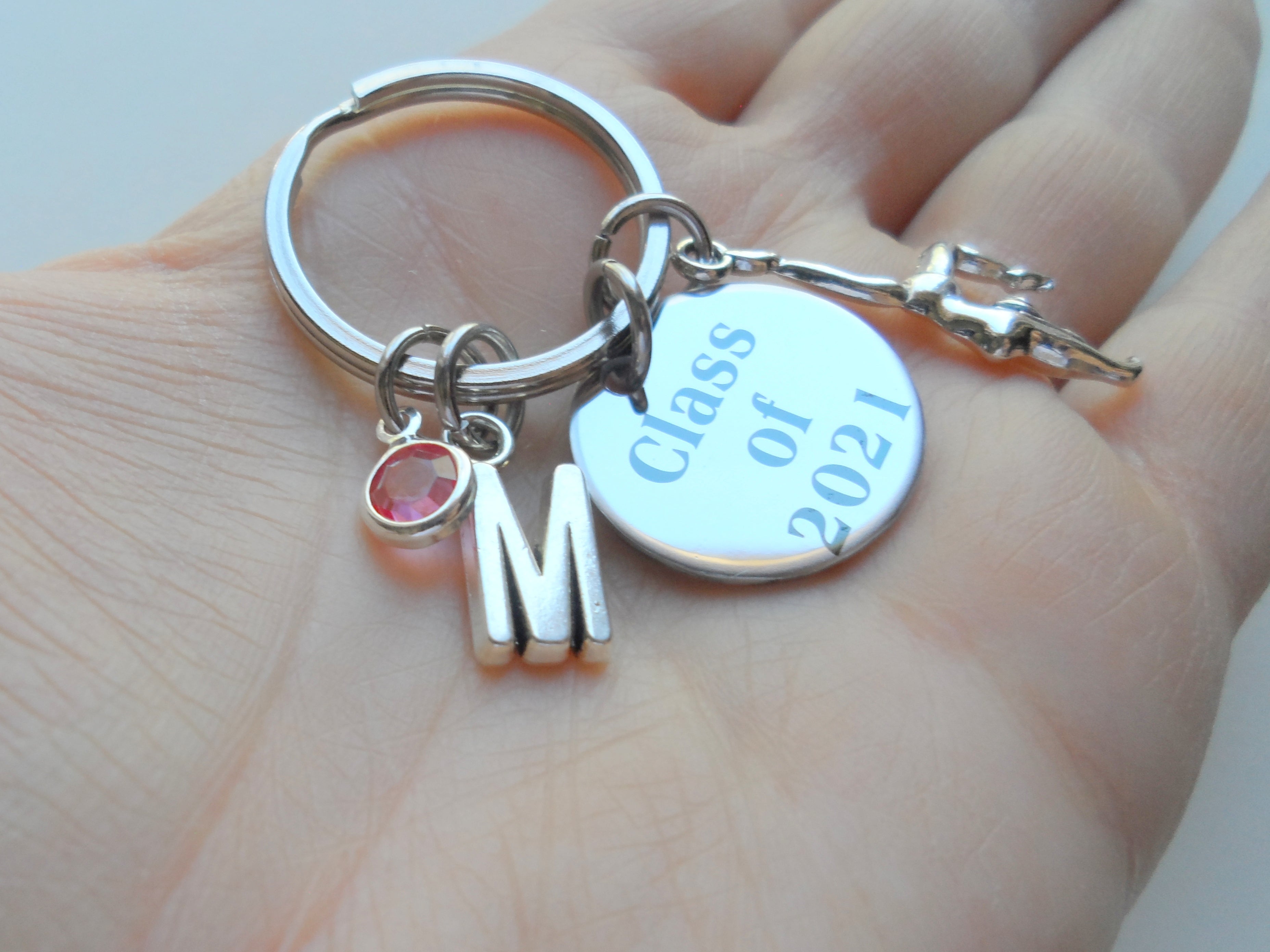 Gymnast Charm Keychain with Custom Engraved Disc, Gymnastics Encouragement Gift