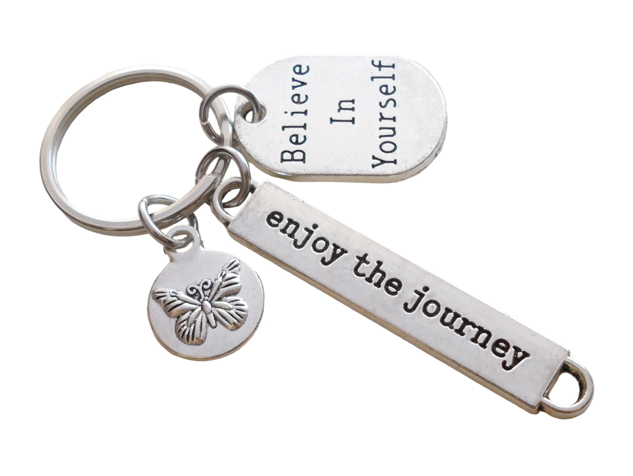 - One keychain with butterfly charm and a "Believe in Yourself" charm and a "enjoy the journey" charm.