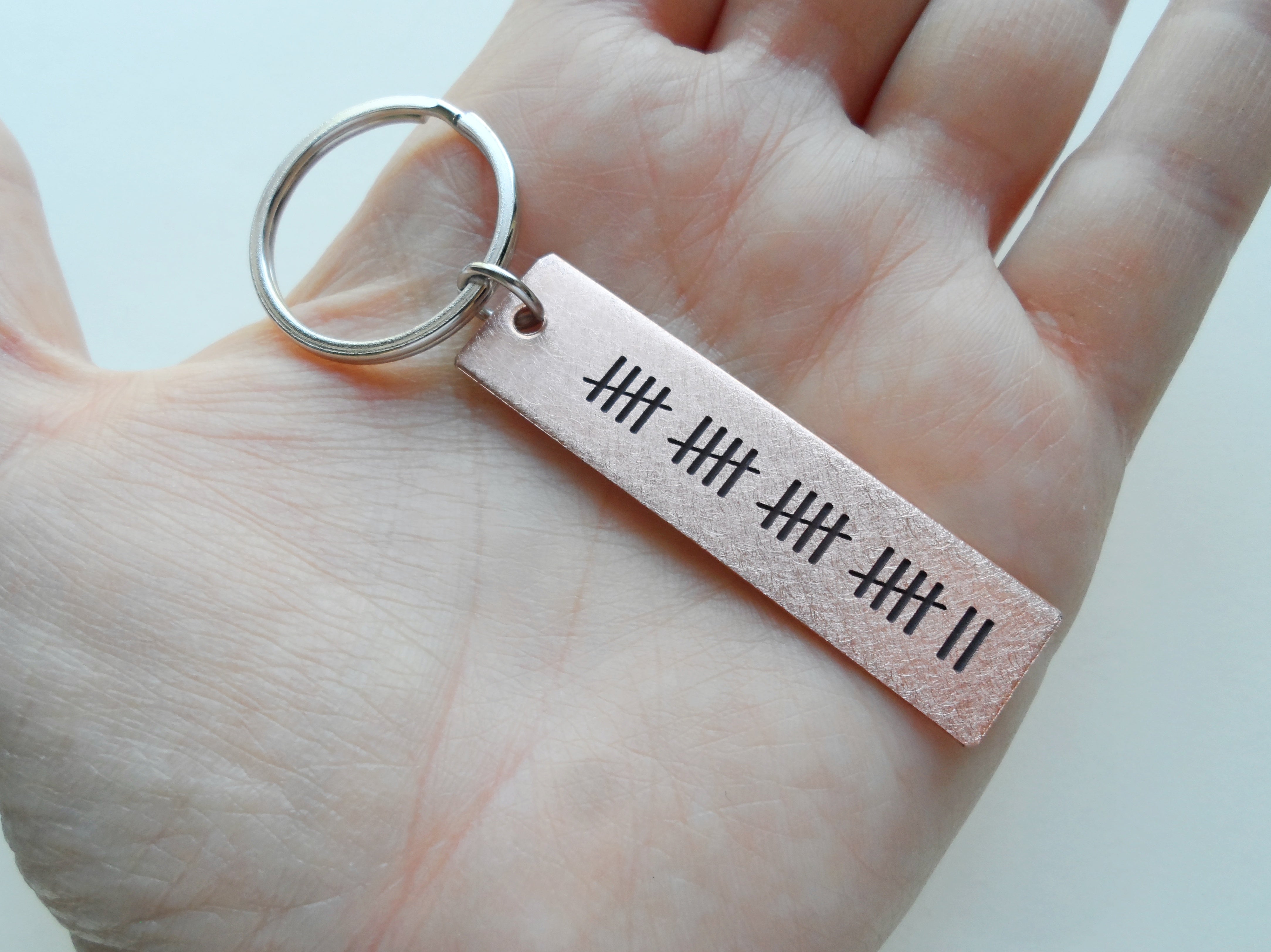 Anniversary Gift • Custom Engraved Tag Keychain Tally Marks by Jewelry Everyday