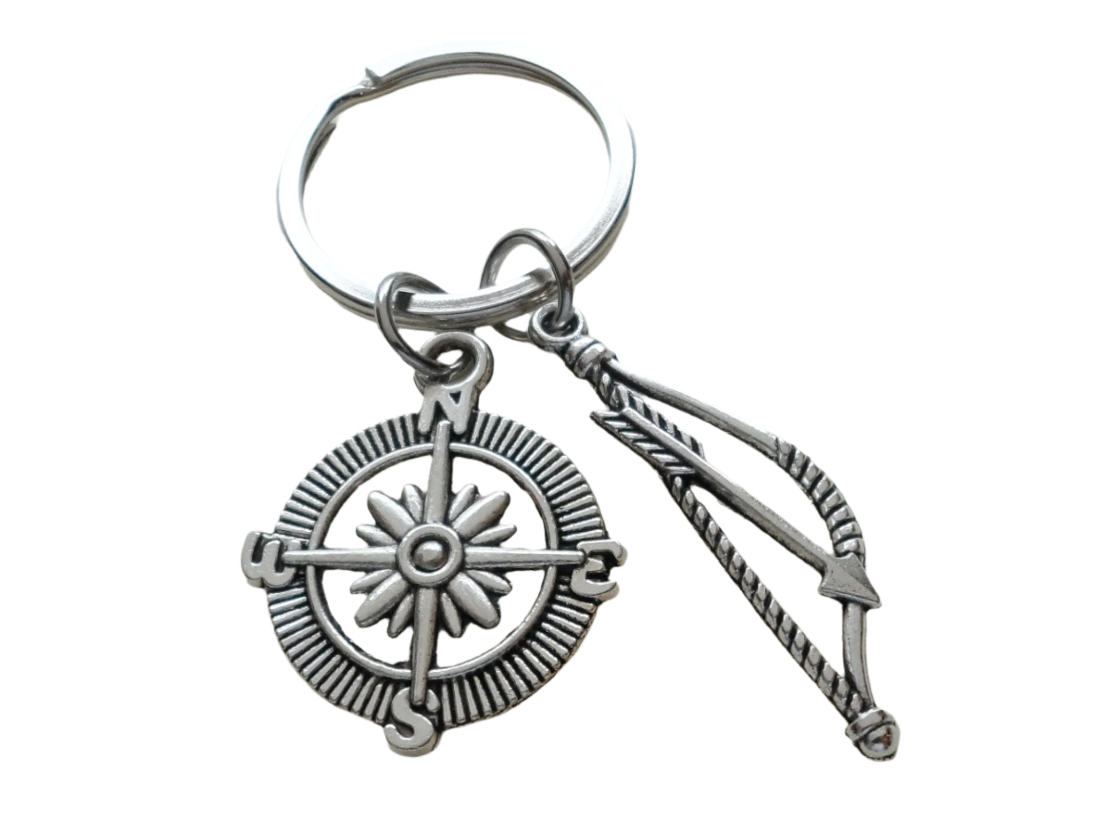 Bow & Compass Charm Keychain, Student or Coach Archery Keychain, or Youth Camp Keychain