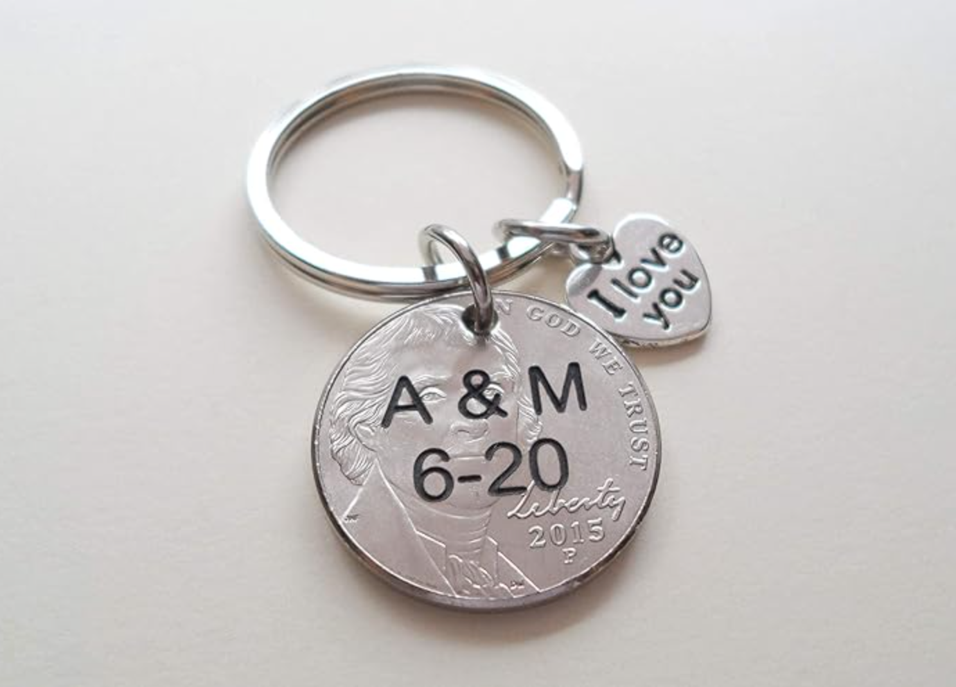 Custom Nickel Keychain with 21 Charm, 21 Year Anniversary Gift, Husband Wife Key Chain, Boyfriend Girlfriend Gift, Customized Couples Keychain