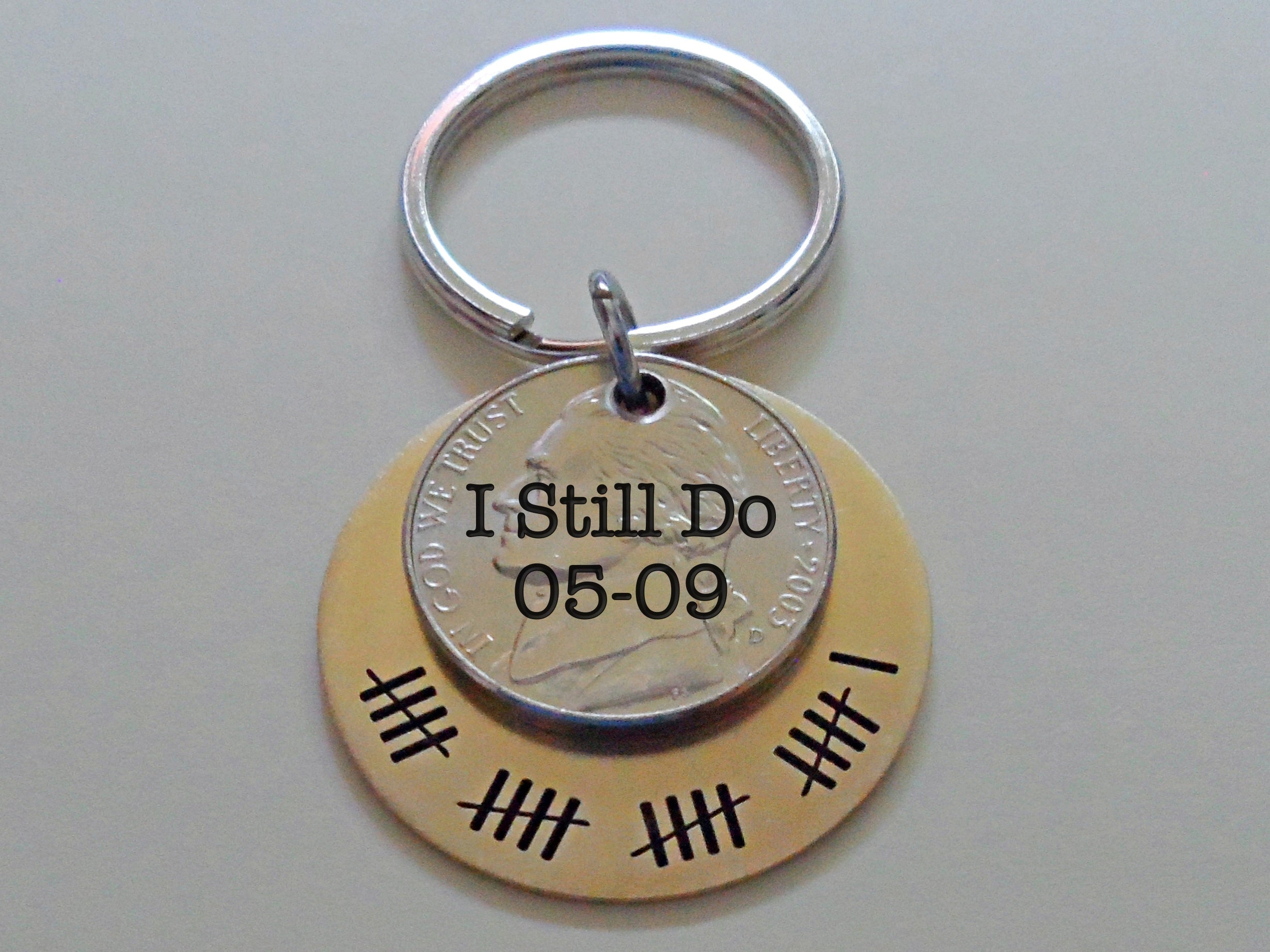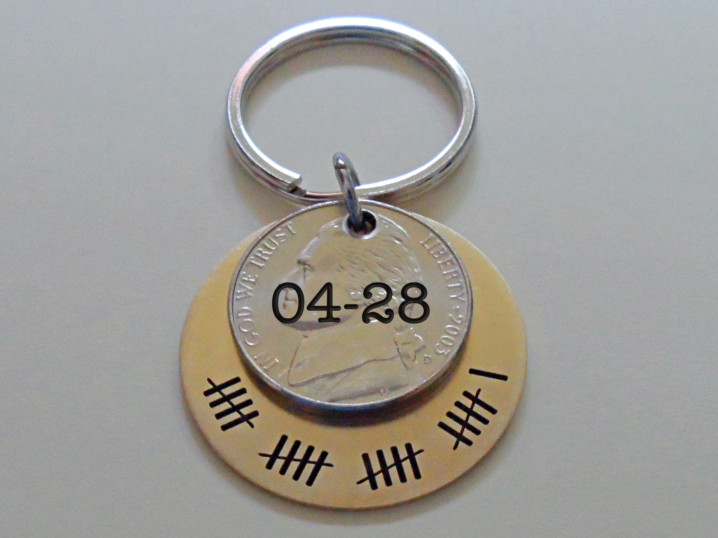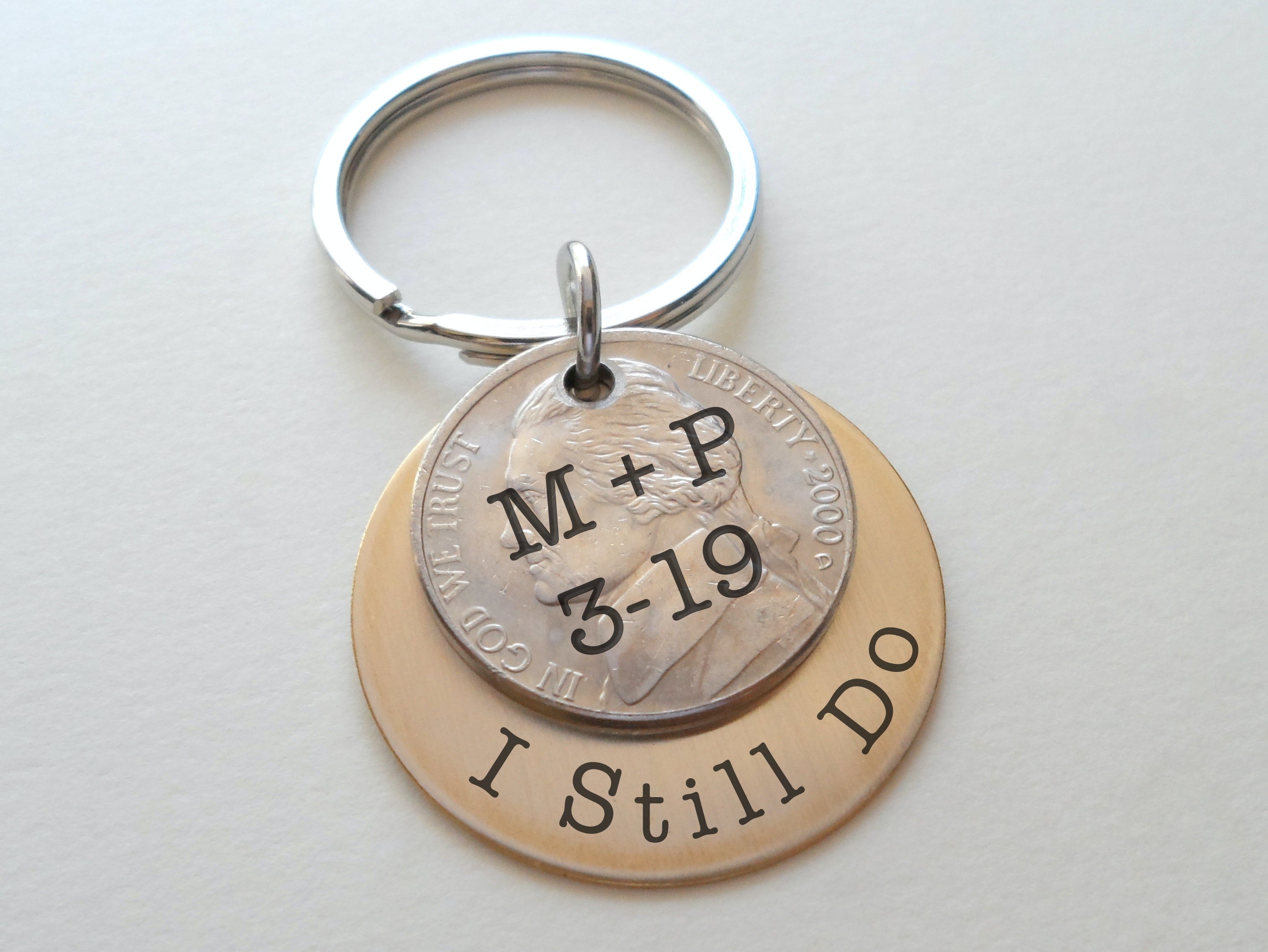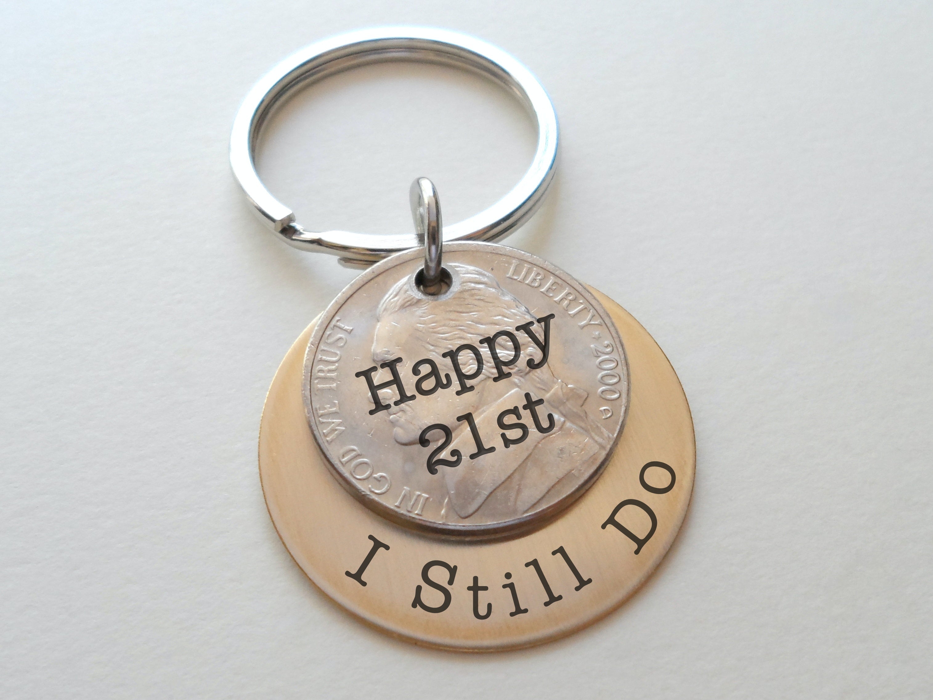 Custom Engraved Brass Disc Keychain with Nickel, 21 Year Anniversary Gift Keychain, Personalized Engraved Keychain