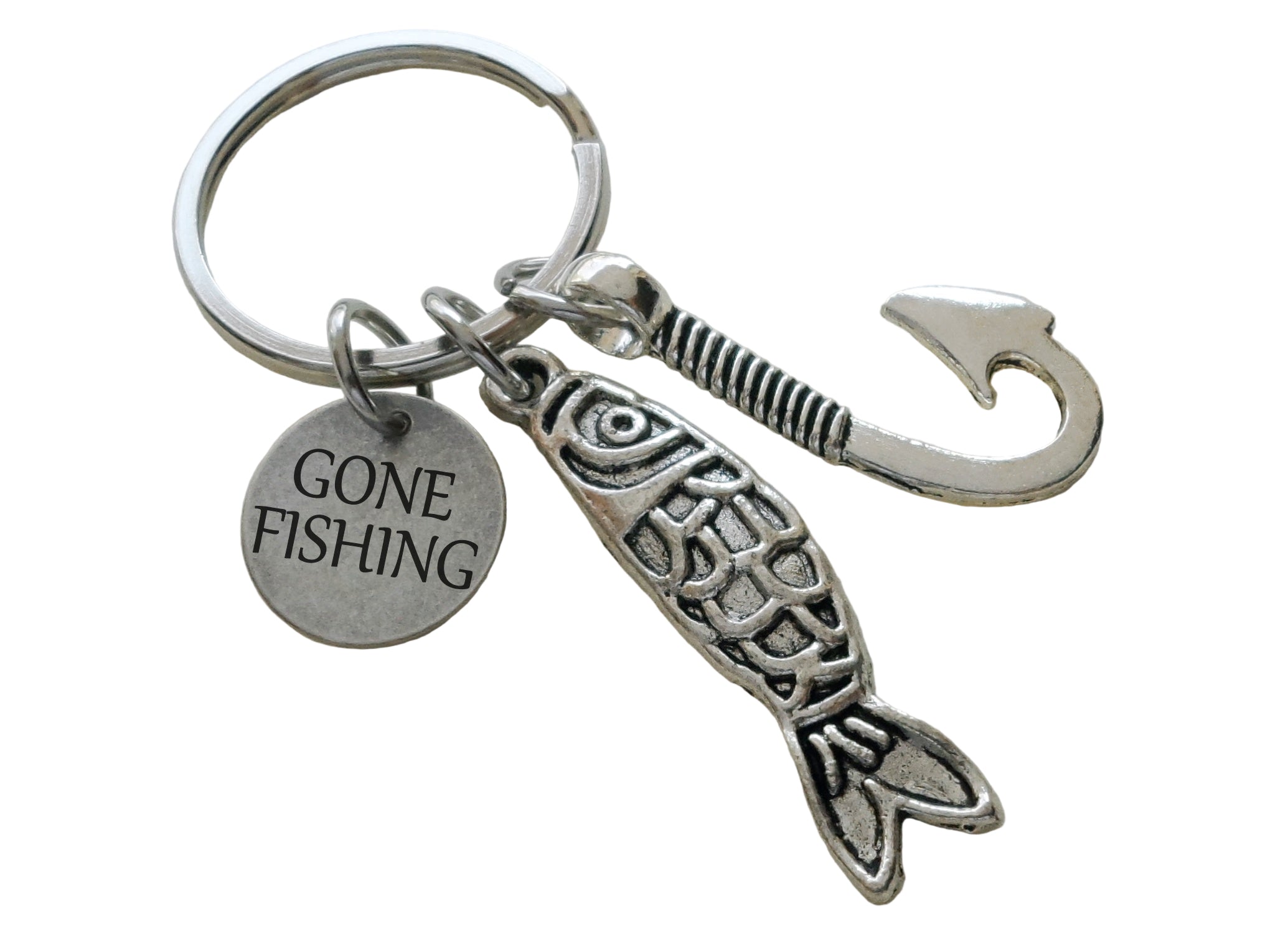Gone Fishing Fishing Keychain with Fish Charm, Hook Charm