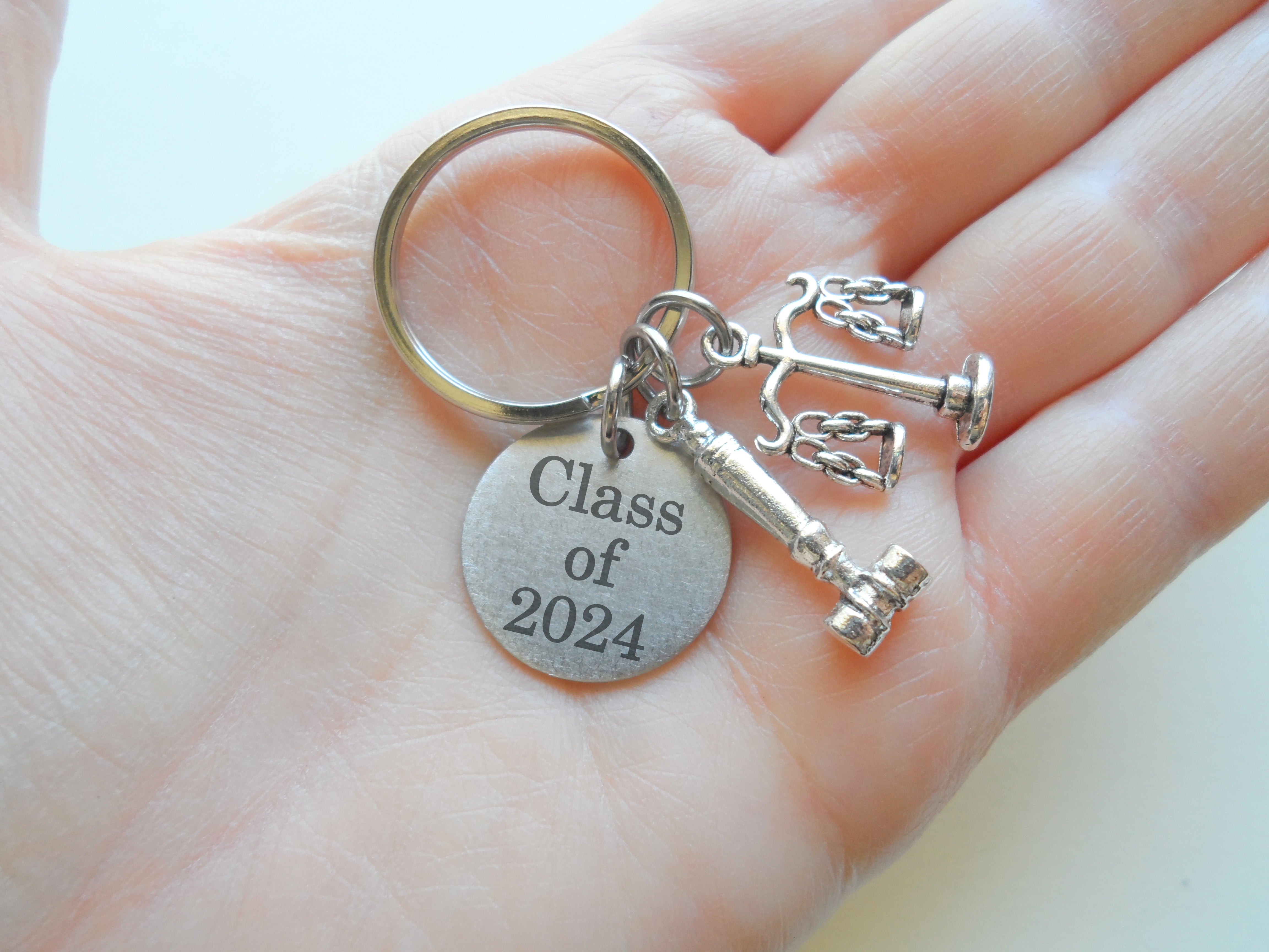• The keychain comes with a custom engraved disc, a scales of law charm, and a gavel charm.