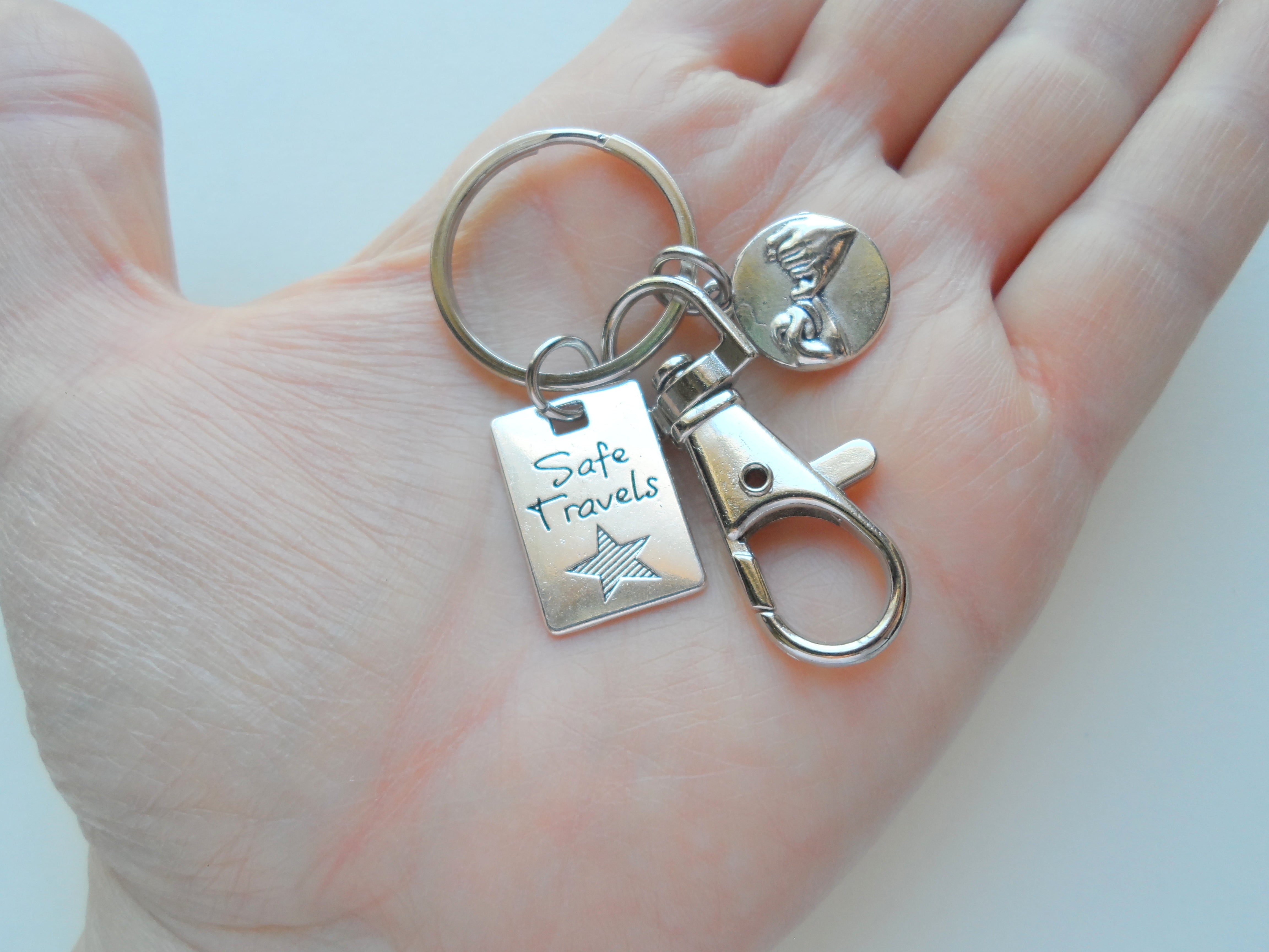 Pinky Promise Charm Keychain with "Safe Travels" Tag & Clasp