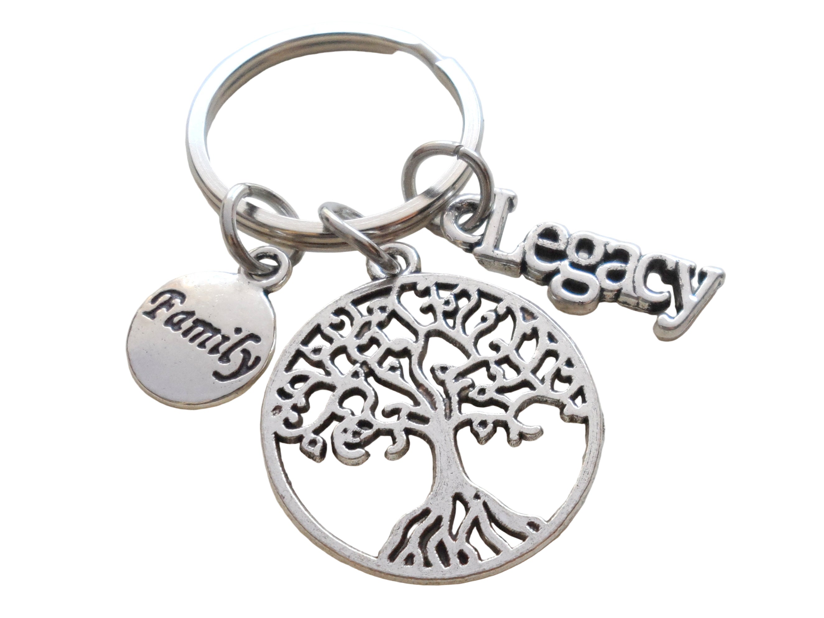 - A tree charm keychain with a Legacy charm, and a family charm.